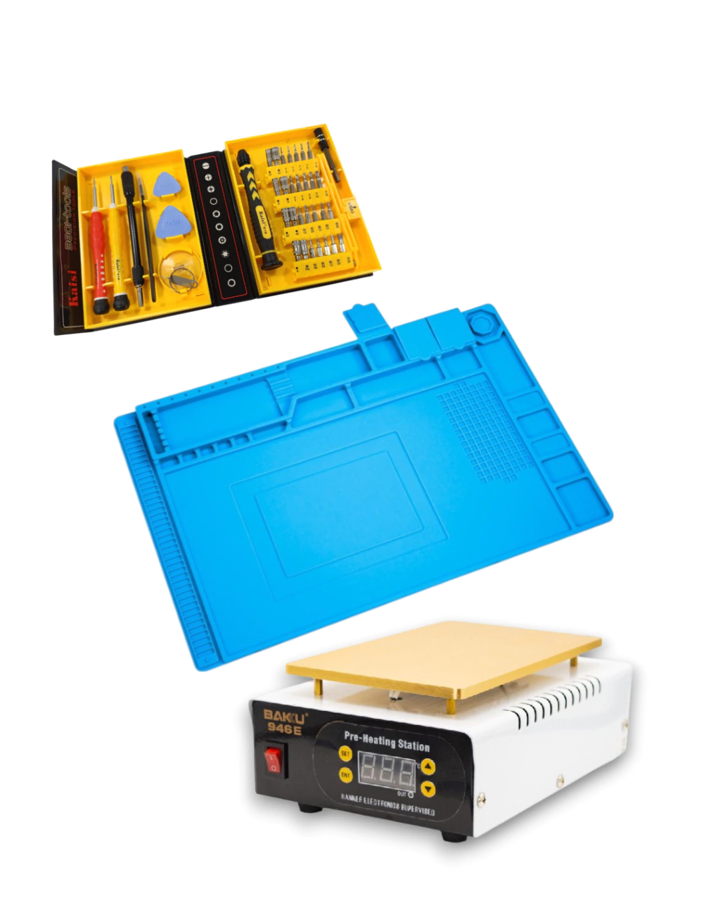Este conjunto está pensado para quienes buscan calidad y funcionalidad en cada reparación. Desde la protección antiestática hasta las herramientas especializadas, cada elemento está diseñado para ofrecerte confianza, precisión y rapidez en cada trabajo.